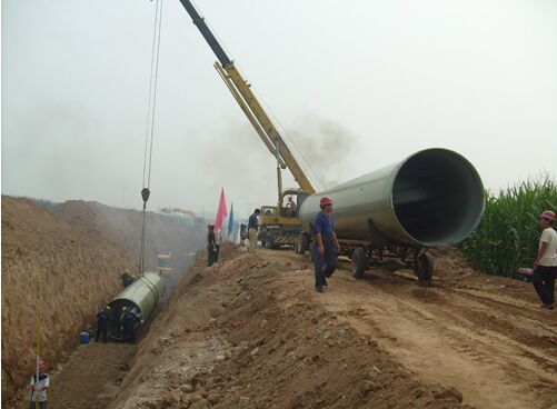 b、玻璃鋼管道每根長達12米,比鋼管可減少接頭數量,在長距離管線安裝時,可提高安裝速度,減少了滲漏的可能性。
